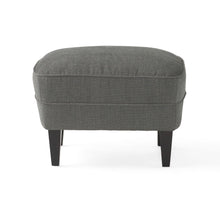 Modern grey fabric club chair and Ottoman set, stylish cushioned armchair, paired with Ottoman style