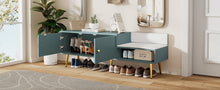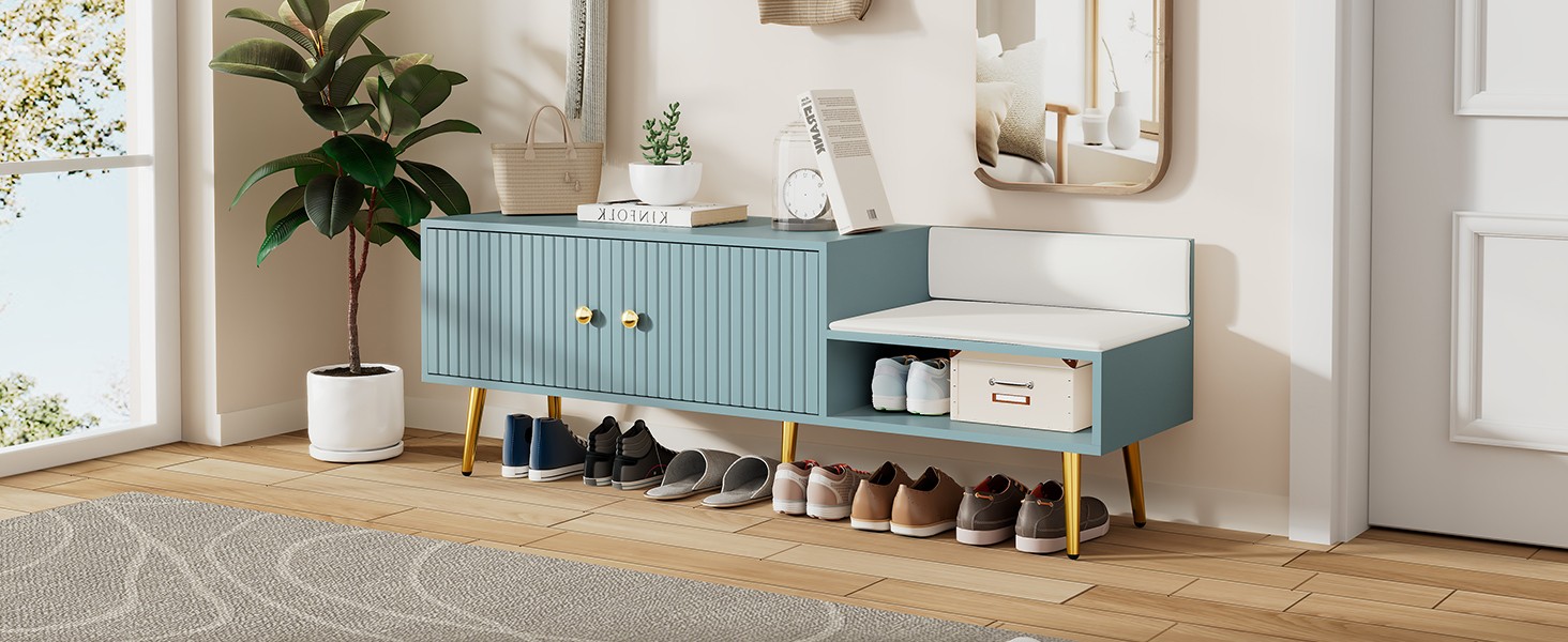 Modern Shoe Storage Bench with Hidden Storage and Upholstered Cushions for Bedside, Living Room and Entryway (Tiffany Blue)