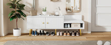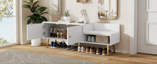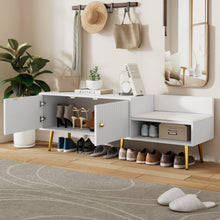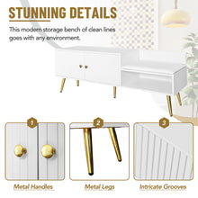 Main Color:WhiteMain Material:MDF+MetalProduct DimensionsAssembled Length (in.):54.30Assembled Width (in.):15.00Assembled Height (in.):19.30Weight (lbs.):56.10Package Size Outer Package ImagesLength (in.):59.64Width (in.):18.90Height (in.):6.10Weight (lbs.):67.90Product Features Modern Style: Featured with a modern and minimalist flair, this upholstered...