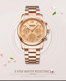 Multifunctional Business Women Watches Quartz Waterproof Stainless Watch Elegant Shine Round Design