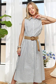 New Striped Button Down Sleeveless Midi Dress For Women – Classic, Elegant, Stylish, Chic, Timeless Striped Midi Dress For Any Occasion