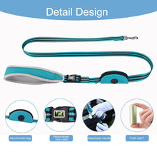 Nylon Combat Padded Leads Dog Leash with Double Padded Handles with Built in Poop Bag Holder Dispenser