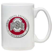 This coffee mug is decorated with a fine pewter casting. It is microwaveable and dishwasher safe with no heat cycle.. The glass coffee mug is 16 ounces, and the ceramic coffee mug is 15 ounces.