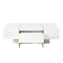 ON-TRANS 47.2 inch x 31.4 inch multifunctional rectangular sofa table with 2 drawers and gold wood grain leg center table, white