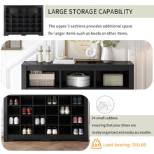 The cabinet is divided into 24 small cubbies, each designed to hold a single pair of shoes, ensuring that your shoes are neatly organized and easily accessible. The upper 3 sections provides additional space for larger items such as boots or other items.