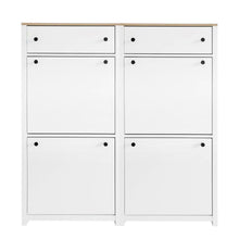 ONTREND ultra-thin shoe cabinet set with 4 flip drawers and adjustable panel top shoe rack, white