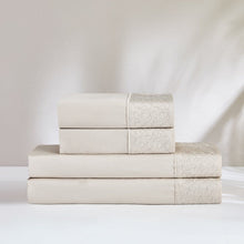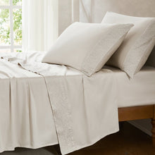 Indulge in the quiet luxury of the Path Cotton Sheet Set. Crafted from premium cotton in a silky-smooth sateen weave, these sheets balance softness with breathability for year-round comfort. The tone-on-tone embroidered cuff features an intricate looped pattern, adding refined texture and a designer touch that elevates your bedding ensemble.