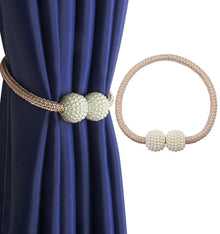 - STRONG MAGNETS SAFETY CONVENIENT: These magnetic tiebacks with upgraded strong magnets, smooth, rust-proof, covered by decorative weave rope to protect your draperies, offers a contemporary solution without the need for tools or drilling holes into trim or walls. The pearl beads is fixed with screws, not by glue. It won't fall apart. It's safe for children.