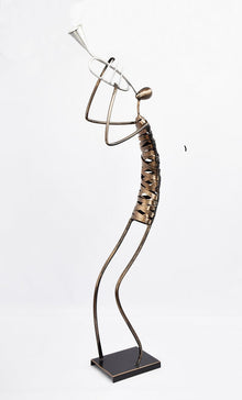 Handcrafted from premium brushed bronze metal, this exquisite sculpture portrays a human figure passionately engaged in the art of trumpet playing. With intricate detailing and fluid lines, it captures the essence of musical expression, evoking a sense of rhythm and melody that resonates deeply with observers.