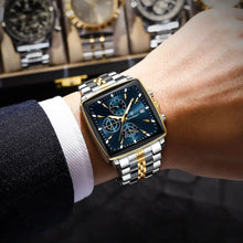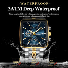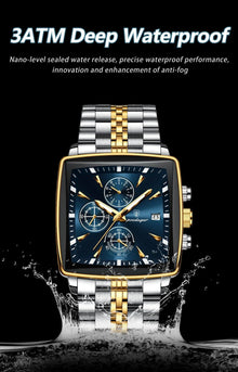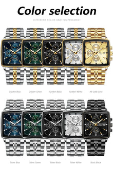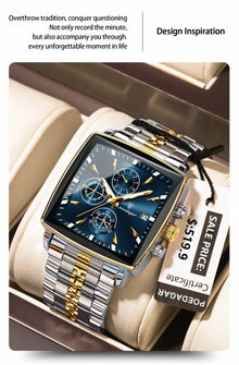 POEDAGAR Men's Square Chronograph Watch - Luminous Waterproof Stainless Steel Quartz Wristwatch