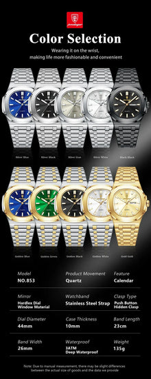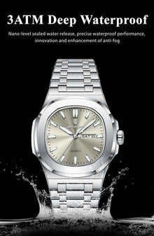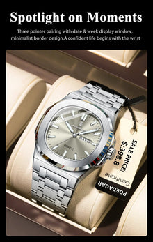 POEDAGAR Military Square Watch for Men - Waterproof, Luminous, Date & Week Display, Stainless Steel Quartz