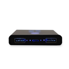 Stay charged up on the go with Hotel Collection's portable charger, featuring two USB-A ports and one USB-C port for all your charging needs. This portable charger fits perfectly in our luggage holder but can also be used independently. Say goodbye to the hassle of searching for outlets or communal charging tables.
