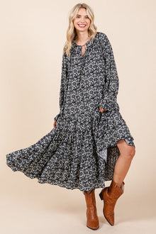 Printed Tie Neck Flounce Sleeve Midi Dress For Women – Fluttering, Feminine and Playful Midi Dress with Ruffled Details