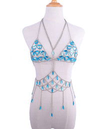 Queen Bling Metal Tassel Details Tank Tops Festival Rave Clothing Summer Sexy Backless Rave Body Chain Beach Tops