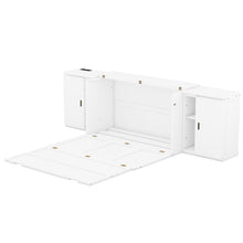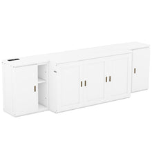 This space-saving bed can be slept on every night and works perfectly in a small apartment or studio. The hide away bed is easy to use, simply pull on the handles and flip the support leg down onto the floor. This Murphy bed can be folded away into a cabinet to open up floor space in any room. This bed is the ideal space-saving furniture for a multi-use guest room, home office, or home gym. With shelves and cabinets, this Murphy bed provide more space for you to store home items.It's stylish and practical. Stay entertained without interruptions with our headboard featuring unique built-in USB ports and a Type-C port, ensuring your devices are powered up for extended binge-watching sessions or gaming marathons.