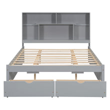 Queen Size Platform Bed with Storage Headboard and 2 Drawers, Gray