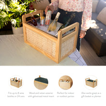Keep drinks deliciously chilled in this charming wood and rattan tub. A galvanized metal insert has plenty of room for ice and drinks, while rattan details bring vintage appeal. Use it to chill up to 8 bottles of wine or 24 cans of beer, hard seltzer, and soda.