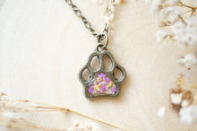 Real Dried Flowers in Resin Necklace, Dog Paw in Pink Yellow White