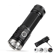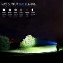 - ULTRA BRIGHT: 3500 lumen(MAX) powerful CREE XHP50.2 LED sweeps extremely bright light reaches nearly 1000 ft. The flashlight beam can easily light up a whole foot field.