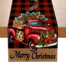 Red car printed table flag Christmas red black checkered linen living room decoration tablecloth