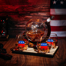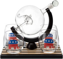 - THE REPUBLICAN 850 mL DECANTER AND 4 GLASSES EXPERIENCE: Entertain with the daring and dramatic. Our outstanding glass decanter adds a unique accent and political to a home bar. This set also includes 8 whiskey stones, and is sure to impress your guests while showing your support!