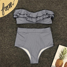 Retro Blue White Striped High Waist Bikini Lady Swimwear Women Swimsuit Female Ruffle Swim Bathing Suit Piece Vintage High Waist Bikini Set Ruffled Swimsuits For Women Bathing Suits