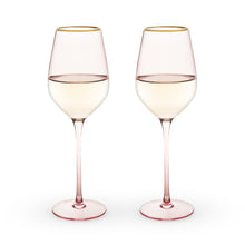 Life looks a lot rosier when you sip from these gold-rimmed glasses. Tinted a delicate pink, these crystal glasses are the perfect vessels for your favorite bottle of white.