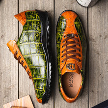 The SAULO is our aggressive combination genuine alligator and ostrich quill fashion sneaker boasting a sport casual silhouette with two tone hand painted finishes. Dress these up with your favorite jeans, slacks, or shorts for a striking look.