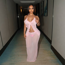 Sexy Transparent Set with Belted Sleeveless Cardigan and Fashionable Long Skirt Two-Piece Set for Women