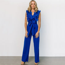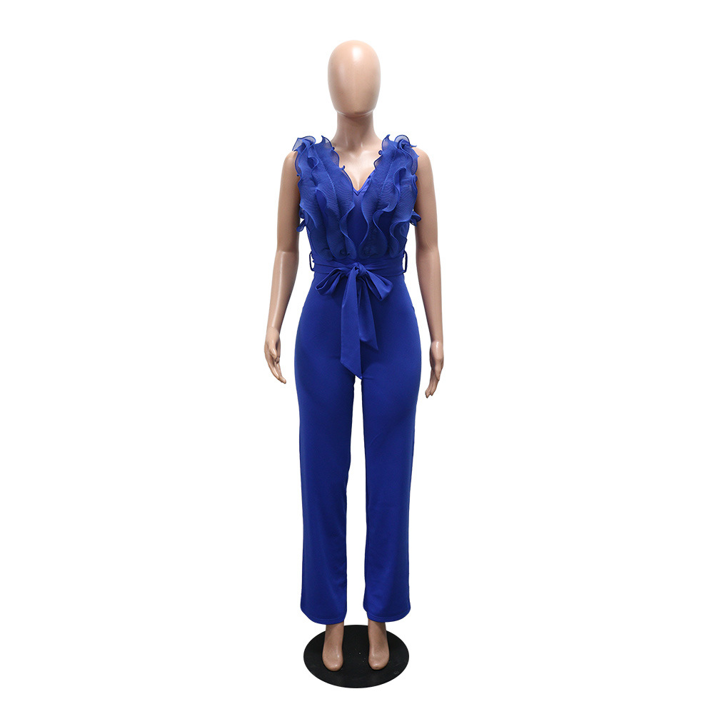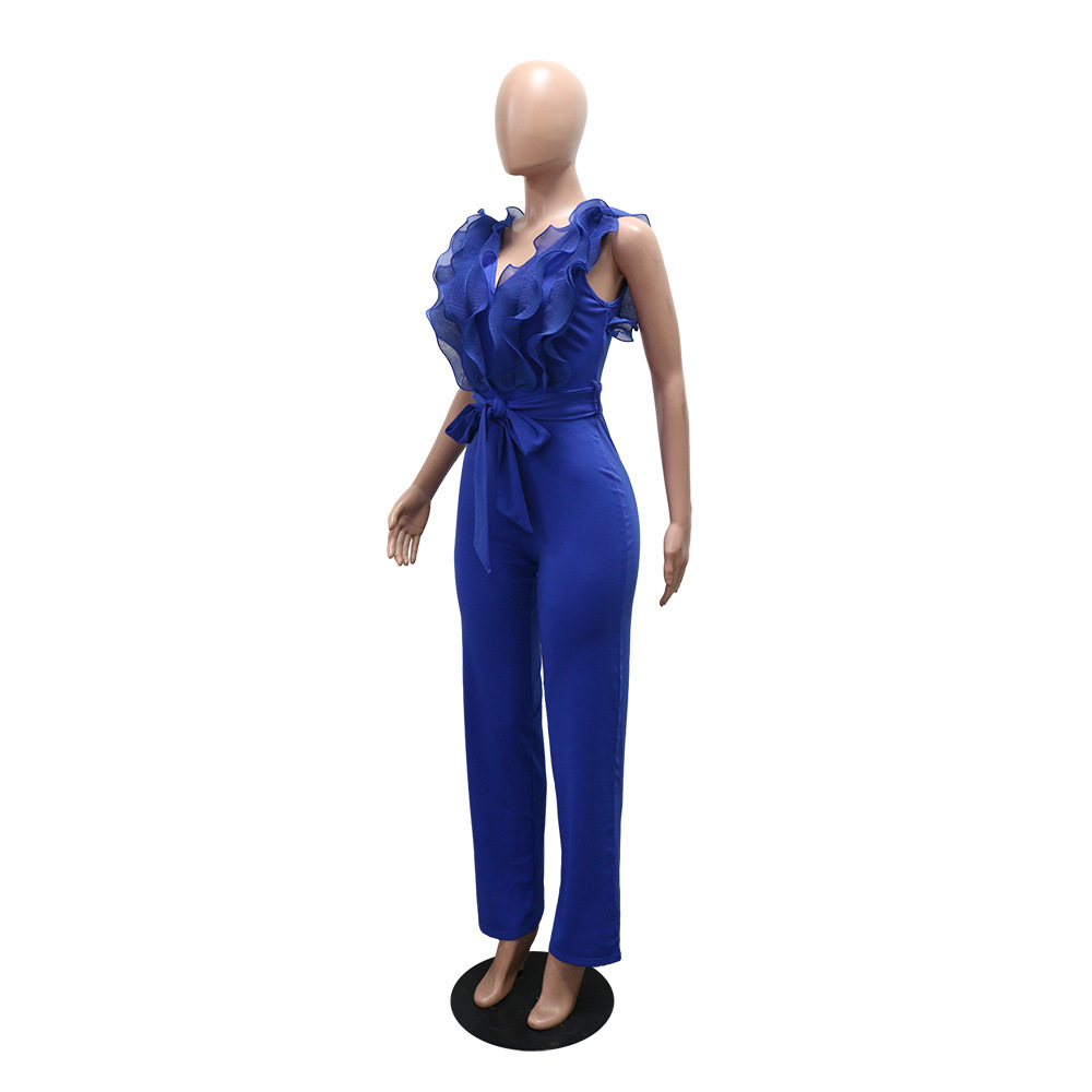 Sexy V-neck Backless Ruffle Tie-up Jumpsuit Casual Long Comfortable Fitted Women's Clothing