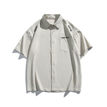 Simple letter embroidery casual short sleeved shirt men's half sleeved shirt