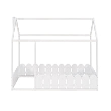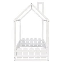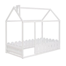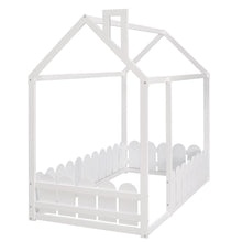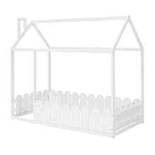 {Slats are not included}Twin Size Wood Bed House Bed Frame with Fence for KidsTeens Girls Boys {White}