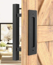 Sliding Barn Door Handle Pull Cabinet Flush Hardware Set Wood Door Handle Interior Door Furniture Handle Hardware Sliding Barn Door Pull Handle with Flush Hardware Set Heavy Duty Solid Square Rustic Style Black Powder Coated Finish