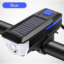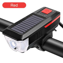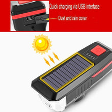 Solar Charging Bicycle Light LED Road Mountain Bike Front Light Waterproof Bicycle Bell Light Rechargeable Headlight Horn Solar Powered USB 3 Mode Bicycle Headlight Combinations Front Light And Bell For Cycling Riding
