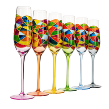 - The Wine Savant brings a little bit of color into your soiree's with the Stained Glass Champagne Flute Set of 6. The combination of an elegant shape and vibrant stained glass design makes for a functional, fun piece for all bubbly lovers to enjoy. The vibrant colors reflect against the intricate high quality colored glass and truly creates a work of art for your morning coffee. A beautiful Italian Renaissance inspired gift for the connoisseur, friends or a family member that is fascinated by art