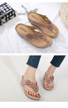 Summer Flat Sandal For Women Multicolor Handmade Retro Flowers Flip-Flops Women Slippers Cute Flat Summer Flats Sandals Women Strappy Flat Open Toe Sandals