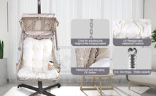 ]Sturdy and Durable: The whole frame of this hammock swing chair is made of powder-coated metal to avoid rust problems, the frame and seat surface of the outdoor swing egg chair are wrapped by rattan resin wicker, the rattan has anti-aging effect for outdoor up to 3 years, with 304 stainless steel hook and hardware accessories, 4-point support stand, safe and reliable, very durable, the maximum load is 350lbs. [