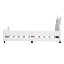 Teddy Fleece Twin Size Upholstered Daybed with Carton Ears Shaped Headboard White