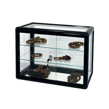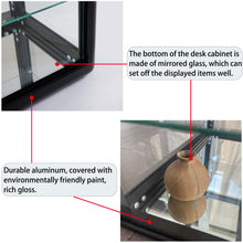 The Aluminum countertop display showcase, it is perfect fit for show your unique and stylish items, and protecting your any valuable items, figures and dolls from dust or germs, 2 removable glass shelves provide ample display space