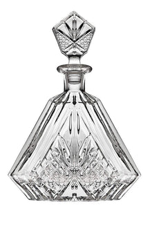 This handsome Dublin decanter adds sophistication to the home bar. Its triangular shaping provides a generous canvas for the Dublin cuts that will suit any home bar well.