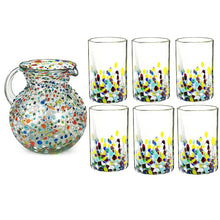 The Wine Savant Hand Blown Mexican Drinking Glasses and Pitcher – Set of 6 with Mexican Confetti Design (14 oz each) and Pitcher (84 Ounces) (Confetti)
