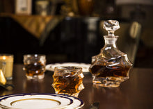 - BEAUTIFUL DECANTER SET ON WOOD HOLDING TRAY: With handcrafted curves, this limited edition Mountain Whiskey Decanter set will prove to be the stand-out object in any room you place it in. The asymmetry and new design in this series creates a fantastic centerpiece and conversation starter.
