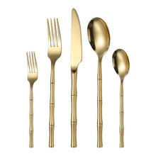 Thickened bamboo 304 stainless steel tableware knife, fork, and spoon set with titanium plated Western steak knife, fork, and spoon