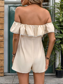 Tied Ruffled Off-Shoulder Short Sleeve Romper