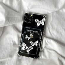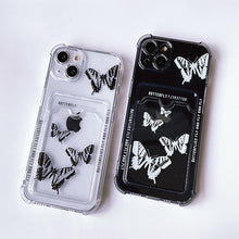 Transparent Butterfly Pattern Case For iPhone 14 Plus 13 12 11 Pro Max X XR XS Max Soft Card Slot Pocket Holder Wallet Cover Cute Butterfly Glitter Clear Phone Case Protective Cover With Card Holder