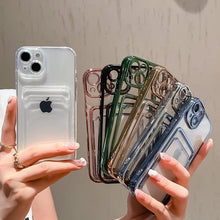 Transparent Card Holder Wallet Case For iPhone 13 11 12 14 Pro Max 14 Plus Photo Pocket Shockproof Silicone Cover Wallet Case Card Slot Ultra Glossy Slim Clear Case