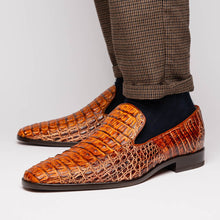 The TRENTO is our fully wrapped, genuine caiman crocodile slip on. It features a stunning polished hand finish, easy slip-on application, and a full leather outsole. Dress these up with your favorite jeans, slacks, or shorts for a sophisticated look.