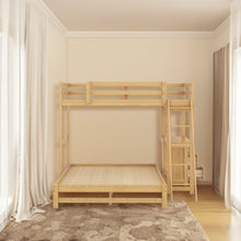 Twin over Full Bunk Bed with Built-in Desk and Three Drawers, Natural