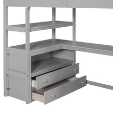 Twin Size Loft Bed with Desk and Shelves Two Built-in Drawers, Storage Staircase Gray