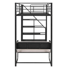 SpecificationProduct InformationProduct Name:Twin Size Metal Loft Bed with Bench and Storage Staircase, BlackMain Color:BlackMain Material:MetalProduct DimensionsAssembled Length (in.):94.50Assembled Width (in.):41.30Assembled Height (in.):72.00Weight (lbs.):124.00Package SizeSub-item 1: MF302652AABPackage Quantity: 143.11 * 26.18...
